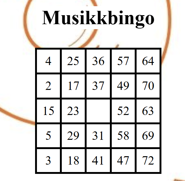 Number generator for music bingo